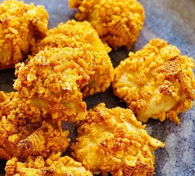 Open de zak Bugles, verkruimel het door flink in de zak te knijpen.