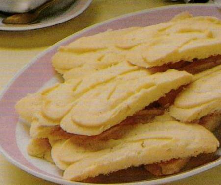 Laat volledig afkoelen en snijd de paleisbanket in koekjes van zo’n 2 cm breed.