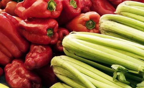 Intussen paprika wassen. In smalle reepjes snijden. Bleekselderij wassen (draden er af trekken). In smalle stukjes (ca. 3mm dik) snijden. Worteltjes schrappen en wassen. In smalle plakjes snijden.