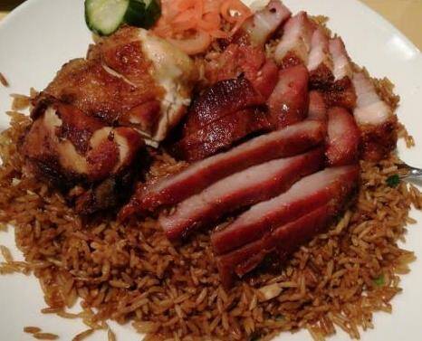 Kook de rijst verhit 3 el olie in de wadjan of wok bak de hamlapjes 5 minuten. Neem ze uit de pan en bak de kippenboutjes 8 min. Neem ze uit de pan.