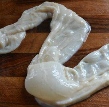 Week de maag of de ox bung een nacht in gezouten water, of prepareer huishoudfolie.