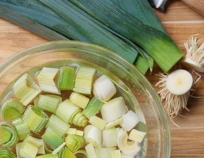 Bladerdeeg op aanrecht uitspreiden en in ca. 10 minuten laten ontdooien. Preien schoonmaken en in dunne ringetjes snijden. In zeef wassen en laten uitlekken.