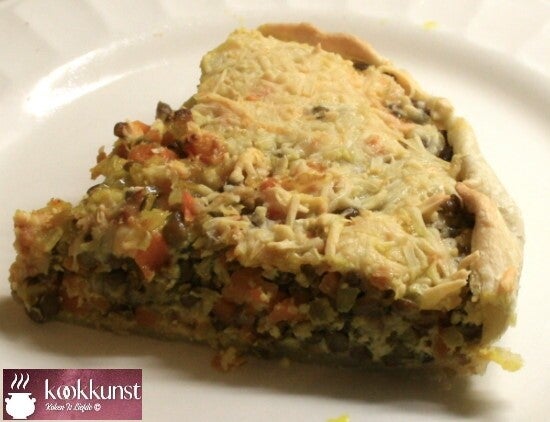 In het midden van de oven de linzentaart in ca. 30 minuten goudbruin en gaar bakken.