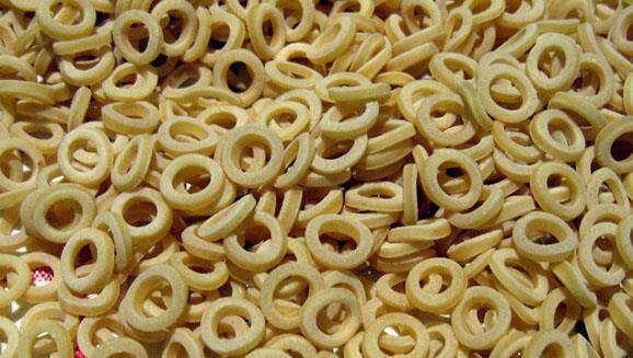 Tortellini: deegringen die met allerlei groente, kaas of vlees gevuld kunnen worden en in verschillende grootte gekocht kunnen worden