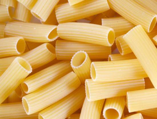 Rigatoni: korte buisvormige pasta waarvan de uiteinden recht zijn afgesneden