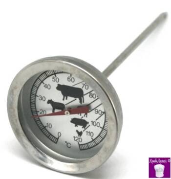 Gebruik deze thermometer voor grote stukken vlees die je in de oven bereidt. Op de thermometer staan alle soorten vlees en je kunt precies zien wanneer je vlees gaar is.