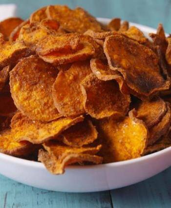 Chips bestrooien met kruidenmengsel en goed omschudden.