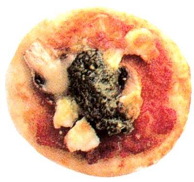 Beleg met tomatensaus, champignons, geitenkaas en pesto en bakken in de oven.