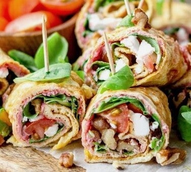 Omeletrolletjes met feta en walnoten